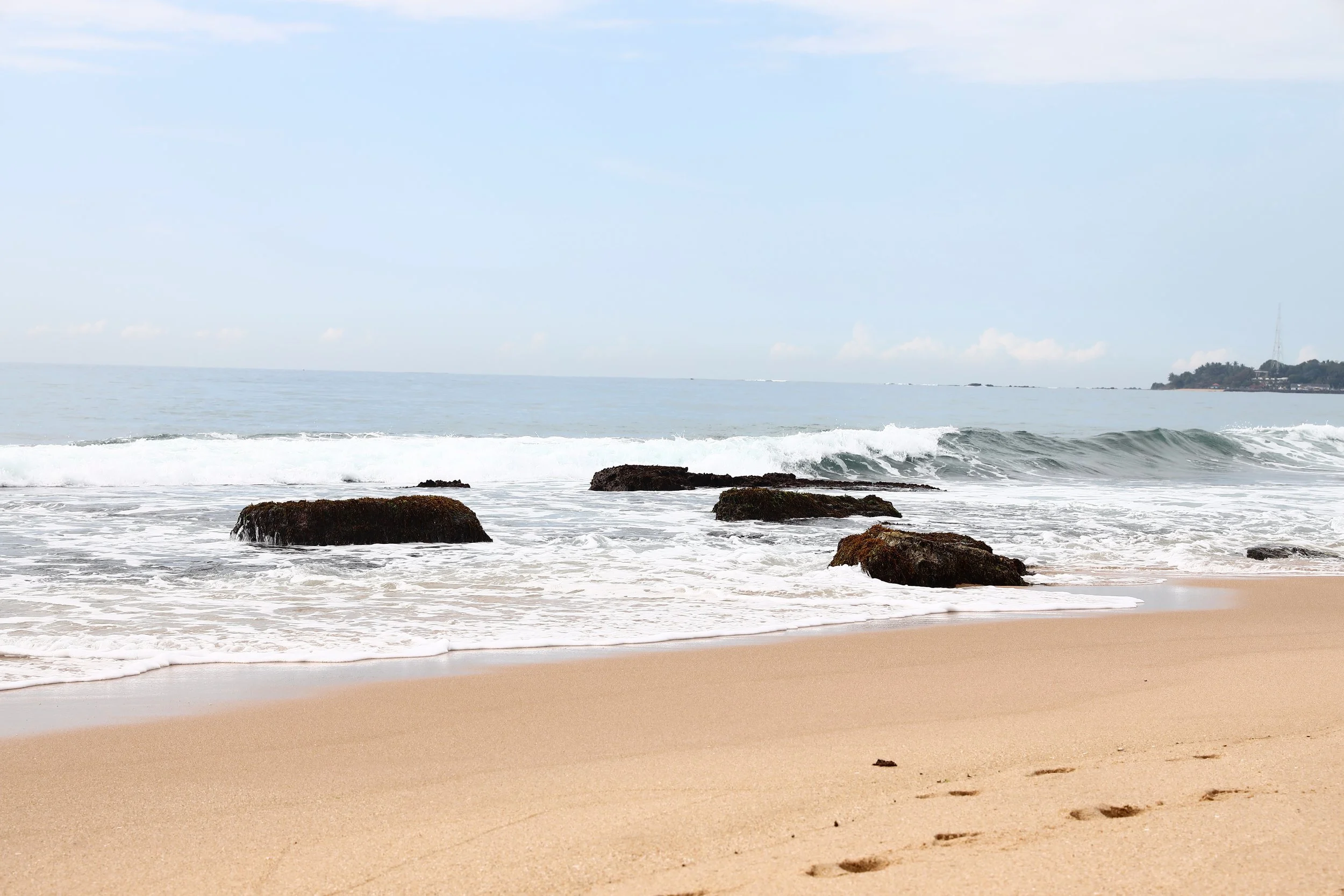 Etwa eine halbe Stunde Fahrzeit entfernt liegt der Hiriketiya Beach. Die kleine Bucht ist ideal zum Surfen lernen, aber auch die Kinder können am Rand gut baden. Der Beach ist längst kein Geheimtipp mehr, er ist sehr bevölkert mit Surfern und Familien. Wir haben ein paar Tage im Mango House verbracht.